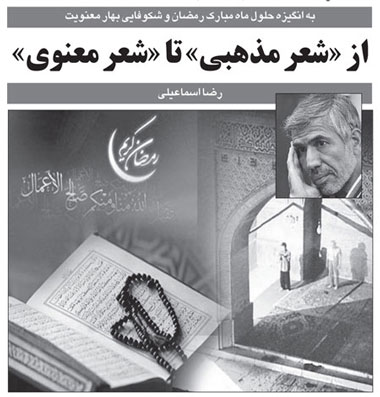 4 – شاعر مذهبی از بیرون سفارش می گیرد، شاعر معنوی از درون. شعر معنوی «قربة الی الله» است، شعر مذهبی«قربة الی الناس» و«قربة الی الدنیا».