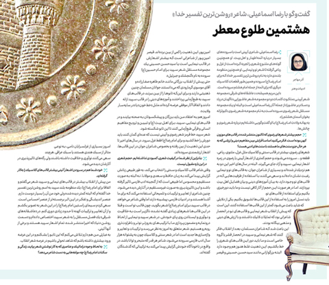 روزنامه جام جم، شماره 5430 به تاريخ 23/4/98، صفحه 10 (فرهنگ: ويژه ولادت امام رضا (ع)